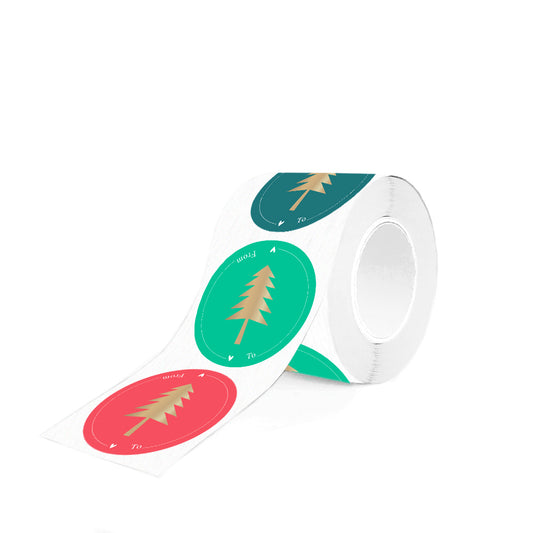 Stickers X-mas Multi - Tree Gold Text - Red (6 stuks)