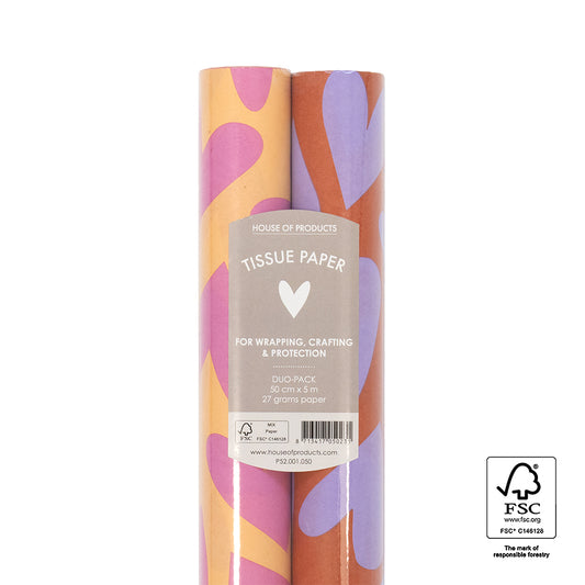 Duo Pack Vloeipapier op rol - Big Hearts Pink/Lilac