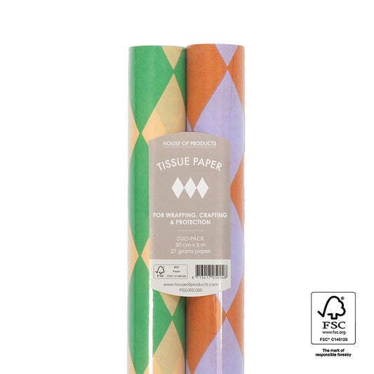Duo Pack Vloeipapier op rol - Harlequin Green/Lilac